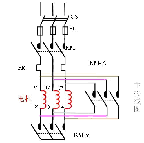 Y-△啟動的話,先要星型啟動的話,肯定KM和KM-Y先要啟動,之后KM-Y要停下來,KM要一直得電,KM和KM-△要一直運行,到正常運行。