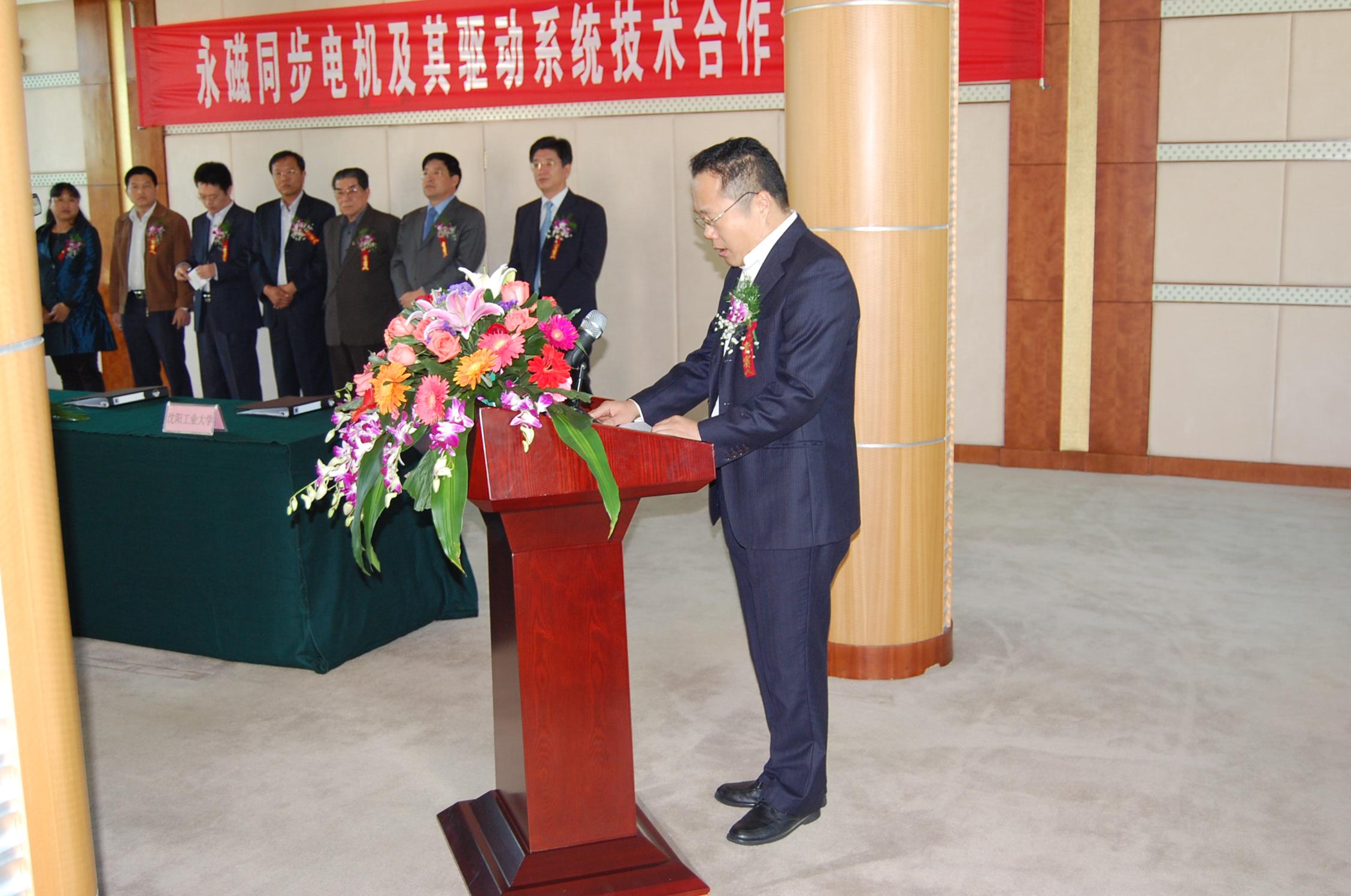 2011年10月16日上午,由力久特種電機(jī)公司、山東省科學(xué)院自動(dòng)化研究所、山東大學(xué)電氣工程學(xué)院、沈陽(yáng)工業(yè)大學(xué)國(guó)家稀土永磁電機(jī)工程技術(shù)研究中心四方聯(lián)合承擔(dān)的永磁同步電機(jī)及其驅(qū)動(dòng)系統(tǒng)技術(shù)合作項(xiàng)目在市國(guó)際大酒店二樓會(huì)議室舉行簽約儀式。市委副書(shū)記、市長(zhǎng)高書(shū)良出席儀式,市委常委、市政府常務(wù)副市長(zhǎng)宋修騫在儀式上致辭。中國(guó)工程院院士、國(guó)家稀土永磁電機(jī)工程中心主任唐任遠(yuǎn)先生出席簽約儀式并到公司參觀考察、指導(dǎo)工作!