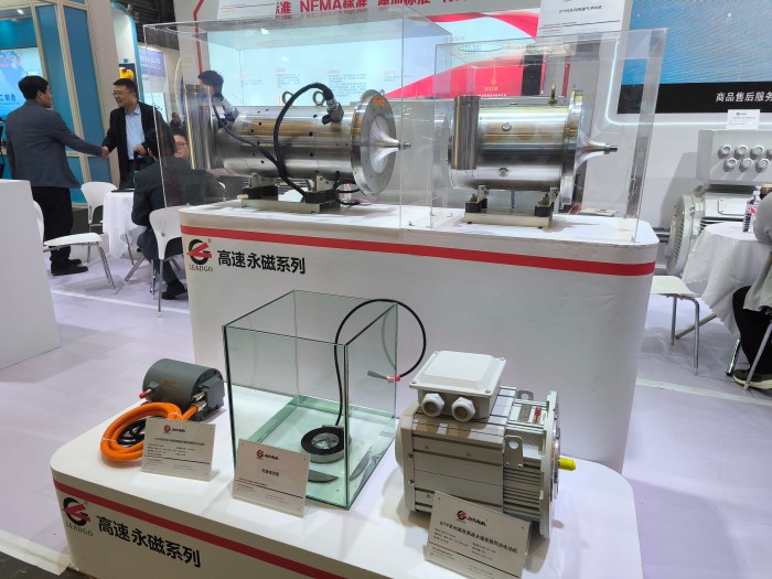 024年11月5日上海亞洲國際動力傳動與控制技術(shù)展覽會(PTC ASIA)如期舉行。作為動力傳動行業(yè)國際盛會,PTC展會現(xiàn)場匯聚了眾多國際性的知名企業(yè)。山東力久特種電機(jī)股份有限公司作為此次展會參展商之一,以精益求精的態(tài)度,精心準(zhǔn)備展會每一處細(xì)節(jié),旨在為客戶帶來更優(yōu)質(zhì)的交流體驗。現(xiàn)場力久電機(jī)展出了NEMA系列電機(jī)、防爆系列電機(jī)、IEC系列電機(jī)、低壓大功率系列電機(jī)、高壓系列電機(jī)、TYP系列等多個電動機(jī)展品,受到廣泛關(guān)注。展會現(xiàn)場使用控制系統(tǒng)啟動展示高速永磁系列的磁浮電機(jī)和氣浮電機(jī),更是吸引眾多參觀者駐足咨詢。