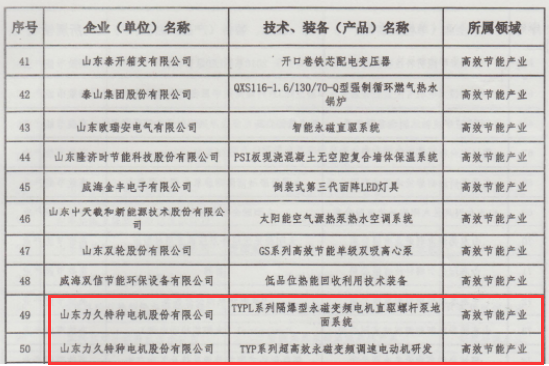力久電機“TYPL系列隔爆型永磁變頻電機直驅(qū)螺桿泵地面系統(tǒng)”和“TYP系列超高效永磁變頻調(diào)速電機”成功列入《2017年山東省節(jié)能環(huán)保產(chǎn)業(yè)新技術(shù)、裝備(產(chǎn)品)推廣,目錄》。